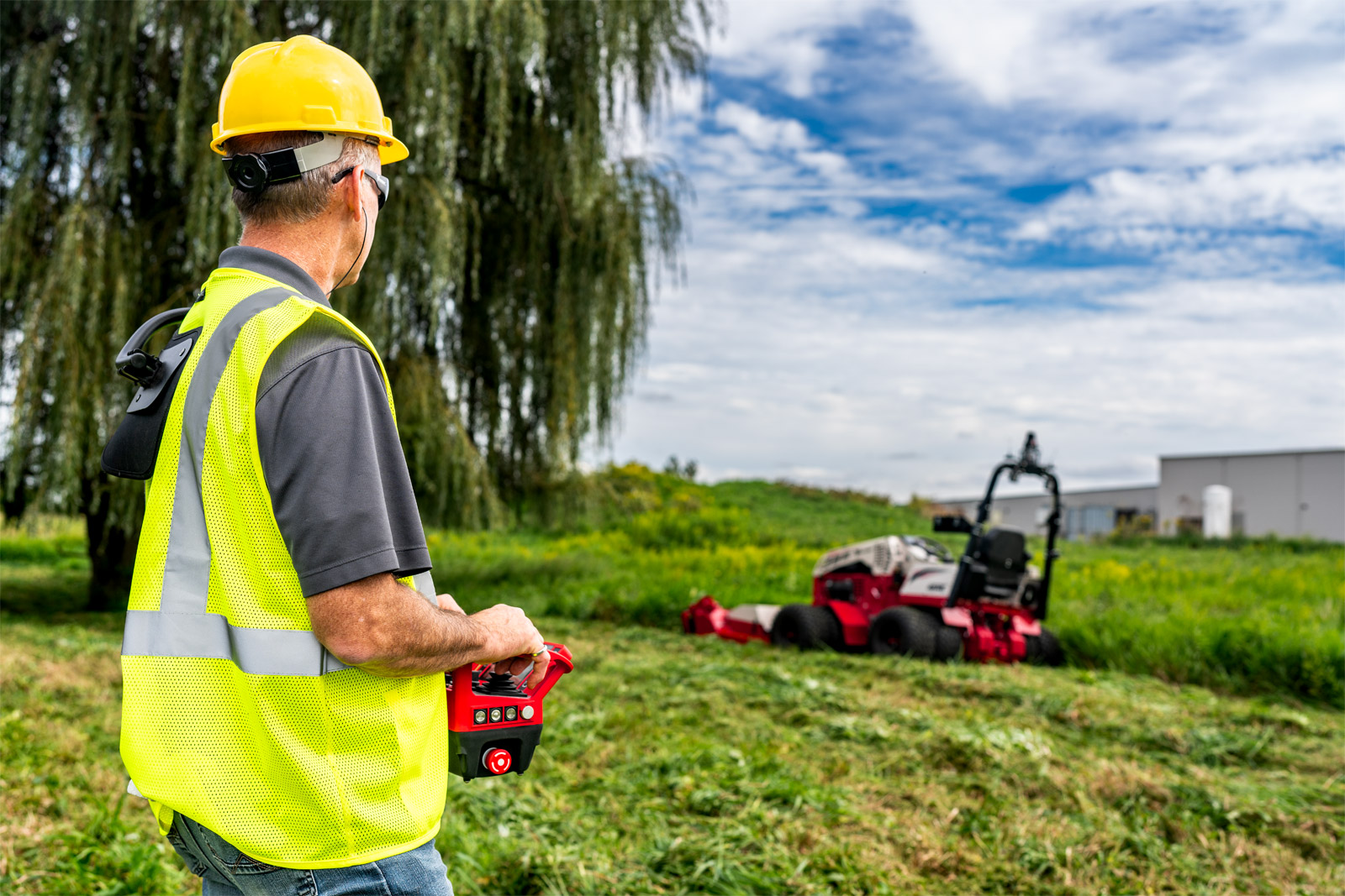 The Ventrac 45RC offers dual operation modes to meet the operator’s needs. Intuitive joystick controls and an industrial-grade remote ensure precision and durability in demanding environments. This advanced system prioritizes both durability and operator comfort, enhancing the overall remote mowing experience.