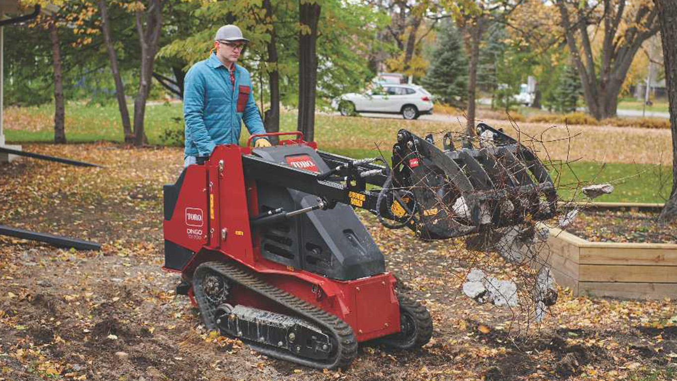 Available in both narrow track and wide track configurations, the Dingo TX 700 is equipped with the industry-tested Camso track system — which features a less aggressive tread pattern that minimizes turf damage.